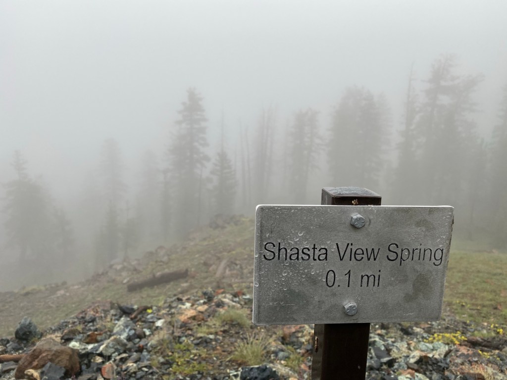 Und dann, oh Wunder, steht an einem Parkplatz bei diesem Schietwedda ein Tisch mit Obst, Kuchen und Getränken! Ich sage nur Trailmagic! The trail provides! Greg und seine Frau stehen da und warten auf uns. Respekt, stundenlanges Warten bei nasskaltem Wetter macht nun wirklich keine Freude! Als ich komme ruft Greg mir zu: „Bist du ein PCT-Hiker? Ach ja, dich kenne ich! (Wir hatten uns nämlich vor drei Tagen schon mal getroffen.) Du bist doch Dr…, Dr…__- irgendwas mit Zahn war’s! Ach ja, Dr. Cola!“ Der Name ist scheinbar sehr einprägsam und jeder will wissen, wie ich zu ihm kam. Dann erzähle ich meine Story und alle amüsieren sich köstlich. So leicht kann man Freude bereiten!