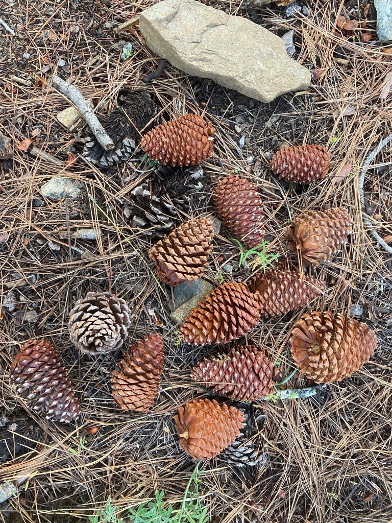 Auch heute ging es wieder fast nur durch den Wald. Das ließ sich wieder super laufen und man konnte Meilen machen. Am Ende waren es wieder 24. Habe ich eigentlich schon gesagt, dass die Tannenzapfen jetzt ganz anders aussehen? Sind, glaube ich, auch Pinienzapfen.
