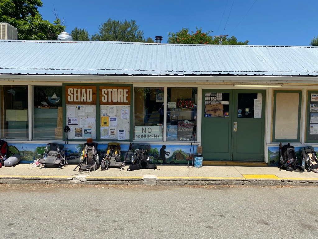Seiad Valley ist die letzte Stadt vor der Grenze zu Oregon. Ich weiß nicht, ob man das bei uns überhaupt als Ort deklarieren würde. Eigentlich sind das nur 5 Häuser, ein Laden mit Poststation und eine Schule. Hier lief ich pünktlich um 12 Uhr ein. Wegen der großen Hitze blieben erst einmal alle Hiker hier über Mittag und lagen nach dem Einkauf und dem Burgeressen im Schatten der Bäume. Zu meinem Westernburger gab es eine seltsame Beilage. Hüttenkäse mit Ananas. Darauf muss man erst mal kommen. Klingt seltsam, schmeckt auch so!