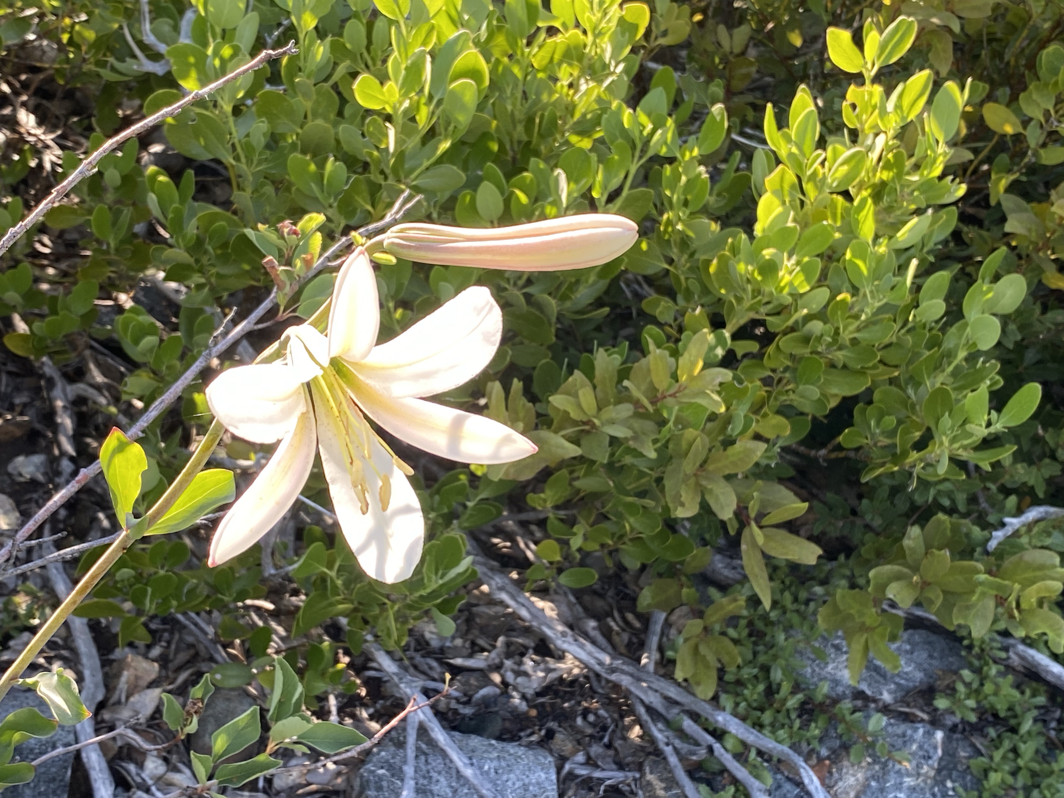 Ich bin dann halt in meinem Tempo langsam und mit ein paar kleinen Pausen den Berg rauf. Die Aussichten waren wieder mal grandios. Die richtig rauhen Berge sind in weitere Ferne gerückt. Wären hier keine Waldbrände gewesen, wäre wohl alles grün. Wobei, Sträucher gibt es in rauhen Mengen. Mitunter kommt man kaum durch, wenn man auf dem Weg bleiben will! Und die schönsten Blumen blühen hier einfach so!
