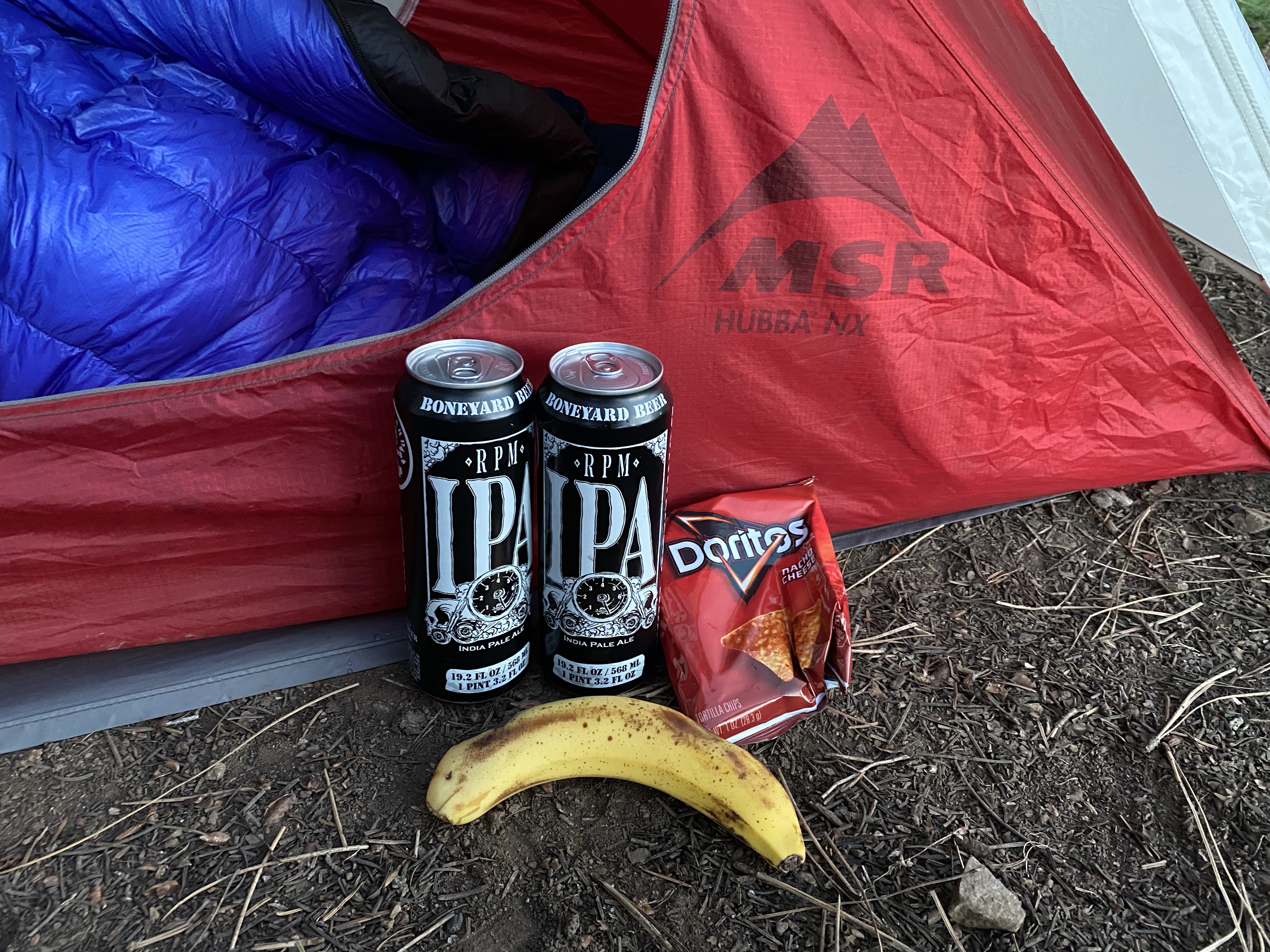 Von wegen, Oregon ist easy. Auch hier geht es gleich wieder bergauf. Ihr könnt das bestimmt schon nicht mehr hören! Wenn es aber doch so ist! Naja, jedenfalls bin ich heute 23 Meilen gelaufen und habe an einer Wegkreuzung mein Zelt aufgebaut, als zwei Hiker kamen und mich nach dem Trailmagic fragten, welches in einer halben Meile Entfernung sein solle. Keine Ahnung! Ich hatte zwar das Schild gesehen, aber das war’s dann auch. Na, jedenfalls sind wir zu dritt die Dirt Road hinab und da war es dann. Getränke, Obst, Kuchen. Alles, was das Hikerherz erfreut! Leute, heute ist ja auch der 13., mein Glückstag! Obwohl, ein wenig traurig war Ich schon. Kein Cola! Wahrscheinlich schon alle! Naja, jedenfalls habe ich mir heute einen richtig schönen Feierabend gemacht!