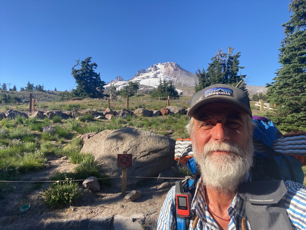 Am nächsten Morgen ging es erst mal im Wald heftig bergab! Komisch, erst habe ich immer über bergauf gemeckert und jetzt sehne ich mich fast danach! Die nächsten Etappen gehen jetzt um den Mt. Hood herum und ab und an hat man einen herrlichen Ausblick!