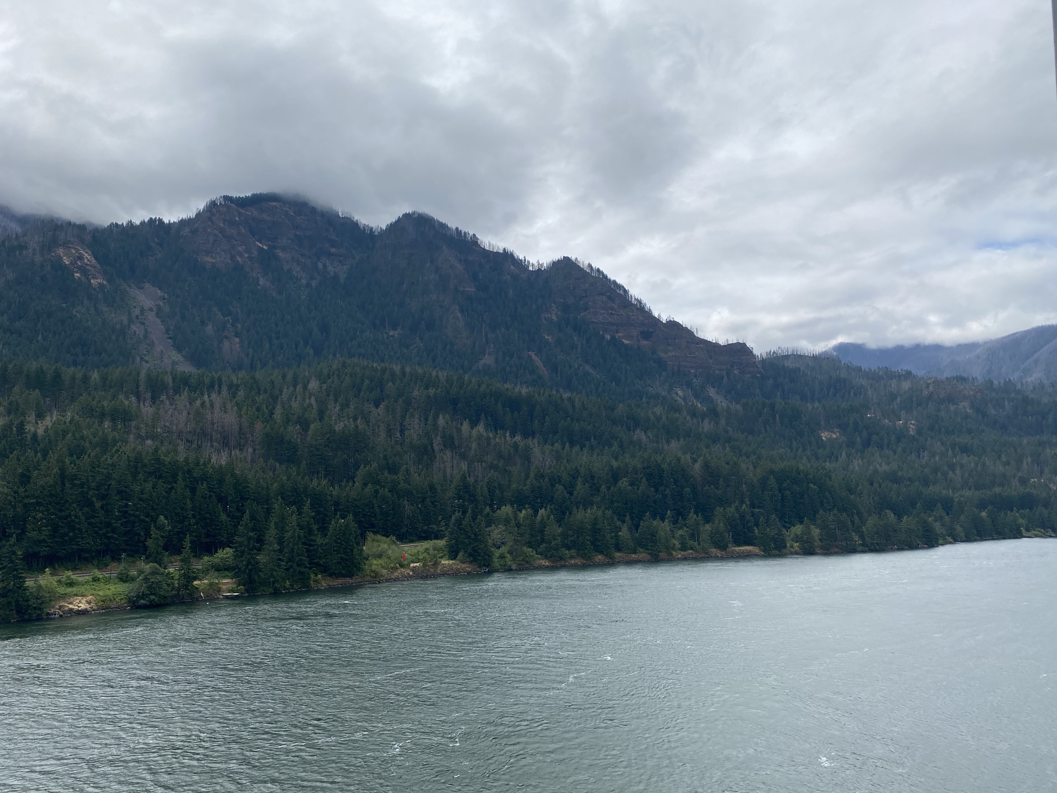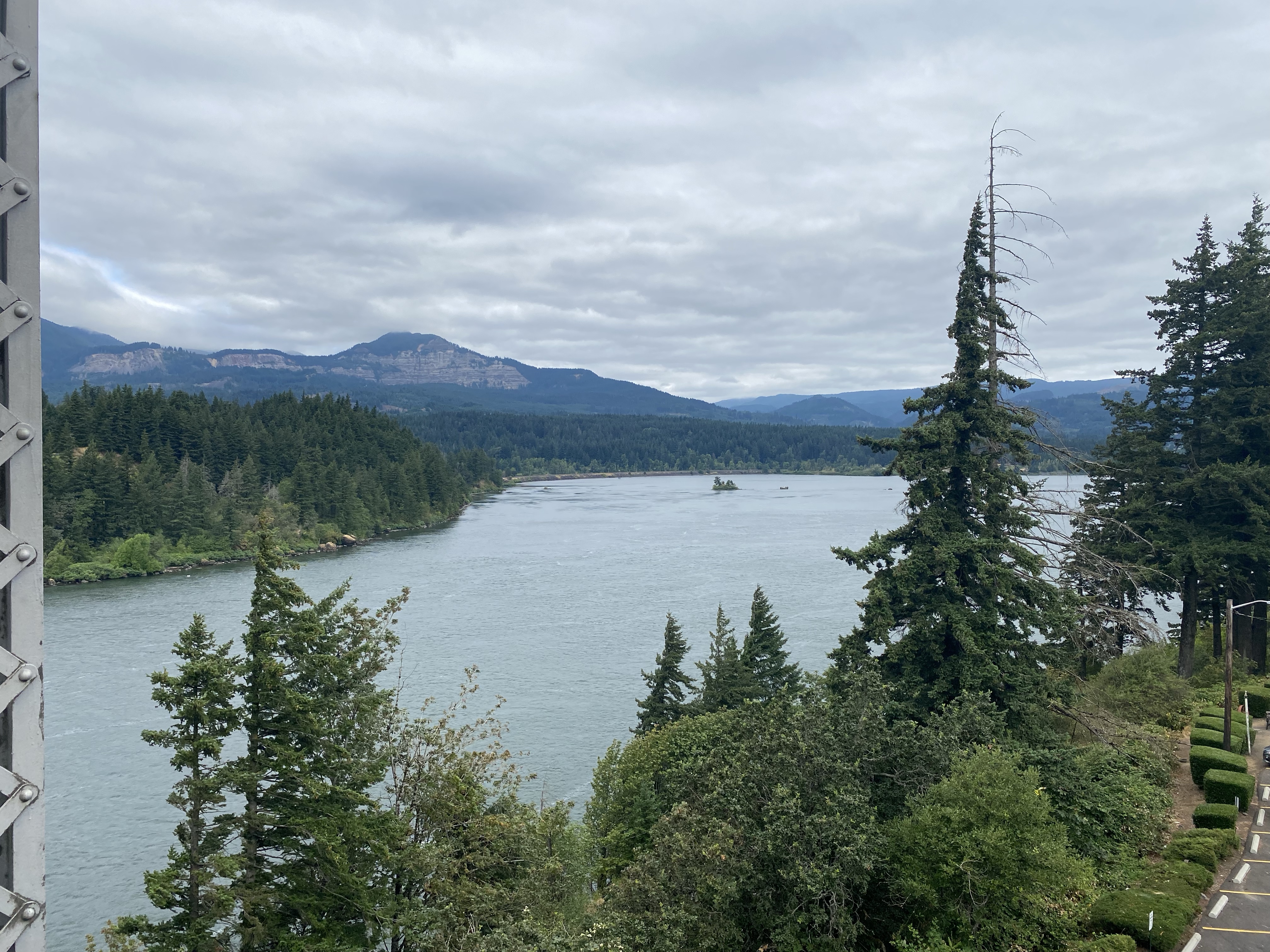 Heute Nacht und heute Morgen habe nicht nur ich, sondern auch der Himmel geweint. Ich habe für mich beschlossen, dass ich hier nicht einfach aufgegeben (ich will ja weiter), sondern aufgehört habe. Ob ich doch noch über den Fluss rüber nach Washington gehen sollte, das war noch eine Frage. Gestern bin ich nur bis in die Mitte der Brücke, was die Staatengrenze ist, gegangen. Heute aber haben alle auf mich eingeredet es doch zu tun und haben mich alten Leiergreis getröstet und umarmt und gedrückt. Sogar junge, wildfremde Mädels! Eigentlich schön, wenn der Anlass nicht so traurig wäre!