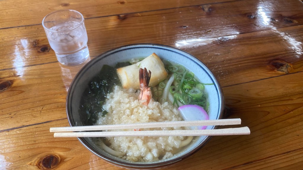 Da ich Hunger habe, gehe ich auf Empfehlung der Hauschefin in ein Udon-Restaurant. Sie hat mir einen Zettel geschrieben, was ich essen soll. Und den habe ich natürlich im Restaurant dem Kellner gezeigt und viel Freude angerichtet.