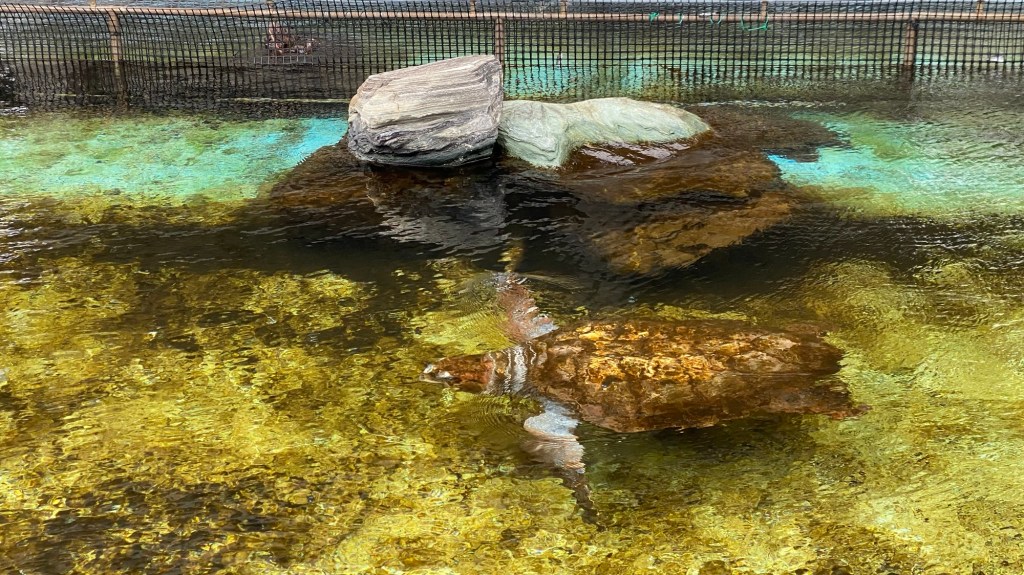 Danach bin ich noch ein wenig rumspaziert und wollte noch ins Meeresschildkröten-Museum. Das hat aber leider wegen Bauarbeiten geschlossen. Nur an einer Stelle konnte man einen dieser Kolosse (bestimmt 1 Meter lang) im Freiaquarium sehen.