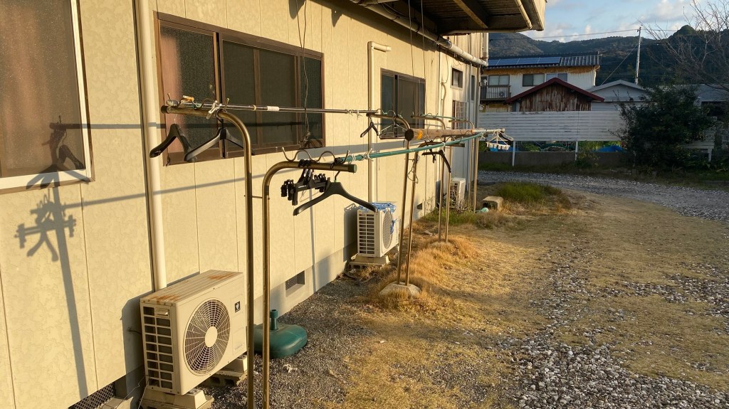 Aber wie die Wäsche aufgehängt wird, weiß ich jetzt! Gestänge wie im Kaufhaus. Nur größer und stabiler und natürlich aus Edelstahl. Ob die wirklich so viel aushalten müssen?