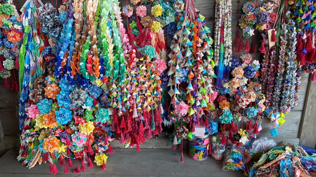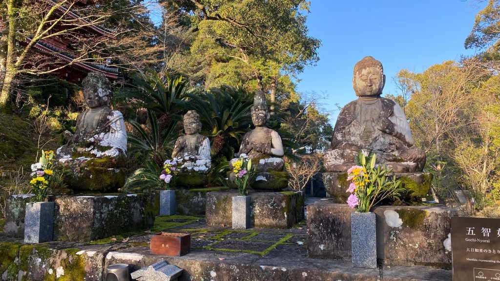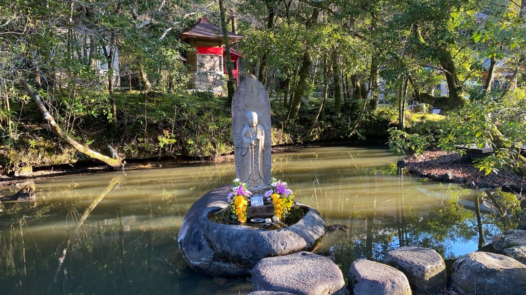 Es geht wieder durch Ortschaft hin zum nächsten Tempel. Ich verzichte auf die Einladung eines freundlichen Restaurantbesitzers. Mein Weg ist noch weit und die Zeit, sie läuft. Ich komme mir heute vor wie ein Stempelsammler für die Wandernadel. Die Tempel auf der Strecke Ware heute außer am Morgen nichts Besonderes. Wobei mir eigentlich die beiden kleinen Pilgerfiguren, die man oft sieht, ganz gut gefallen.