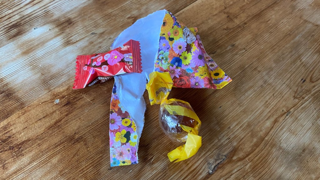 Übrigens habe ich wieder ein Osettai bekommen. Sieht ja schön aus und ich habe es mir als Überraschung bis heute Abend aufgehoben. Wollt ihr wissen, was drin war?