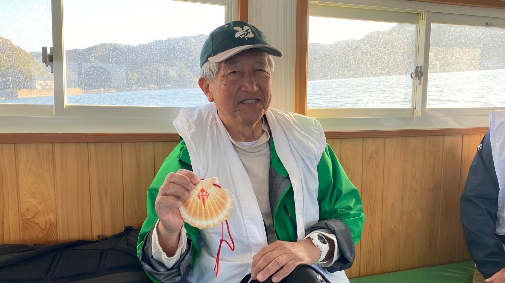 Aber ich war pünktlich. Die Fähre war auch schon da und wen treffe ich nach 3 Tagen wieder? Kaji-san! Und heute zeigte er mir sein ganz besonderes Mitbringsel.