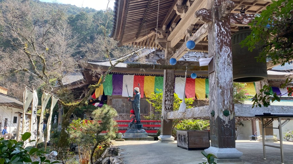 Heute habe ich mich auch lange Zeit nicht verlaufen. Ich bin immer schön den Ausschilderungen gefolgt. Wobei, meistens sind die ja dort, wo man sich sowieso nicht verlaufen kann. Also auf gerader Strecke, wo nicht mal ein Weg abgeht. Wenns wirklich drauf ankommt…! Naja! Und so passierte es wieder, dass ich zwei Kilometer vor dem Ziel einen Abzweig nahm (war aber so beschildert!) , den ich nicht hätte nehmen sollen. So kamen noch zwei bis drei Kilometer, teilweise durch eine Baustelle, bis zum Tempel dazu. Auch habe ich im Nachhinein festgestellt, dass ich mit der Schätzung der heutigen Wegstrecke völlig daneben lag. Laut Messung waren es 26 Kilometer gewesen! Plus Bonuskilometer. Egal! Halb 2 Uhr war ich am Ziel.