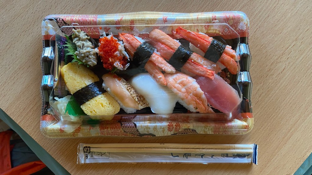 Bei strahlendem Sonnenschein verließ ich heute morgen mein Ryokan, nachdem ich noch ausgiebig gefrühstückt hatte. Es gab unter anderem gebratenen Fisch. Das am frühen Morgen und auf nüchternen Magen! Egal, ich brauche Kalorien! So richtig pappsatt wird man hier wahrscheinlich nie. Dem Essen fehlen einfach die Ballaststoffe. Hat aber auch den Vorteil, dass man nicht so oft auf Toilette muss.