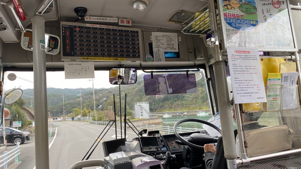 So sieht nun also der Fahrschein und die sich verändernde Preistafel aus. Ihr seht, ich war der einzige Gast im Bus. Wer ist auch früh um 8 Uhr unterwegs?
