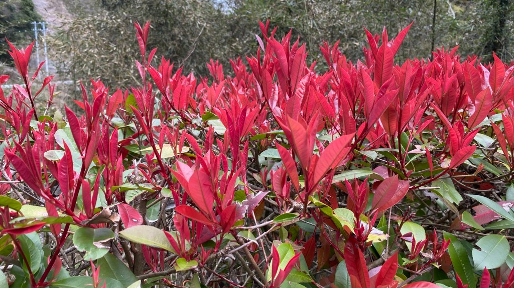 Aber weit gefehlt! Das sind einfach nur die jungen Blätter einer Hecke. Seltsam, aber schön!