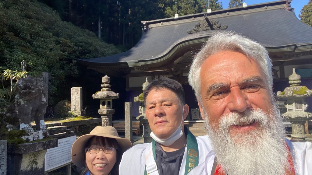 So wie mir geht es auch einem japanischen Ehepaar. Wir kommen ins Gespräch und der Mann erzählt mir, dass er jetzt mit 52 Jahren in den Ruhestand gegangen ist und er auch die 88 Tempel (natürlich mit dem Auto) besuchen will. Aber so, wie ich laufen würde, käme ich nie und nimmer zum Tempel 60 die 900 Meter hinauf, geschweige denn runter. Tempel 60 sei sowieso ihre nächste Station und ich könnte doch bei ihnen mitfahren. Sie würden mich auch gleich wieder mit runter nehmen und beim Tempel 61 absetzen.