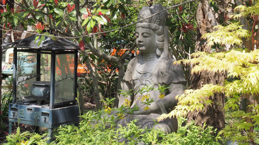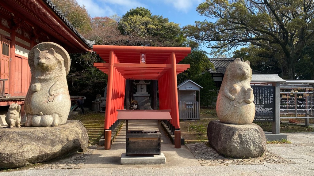 Dazu musste ich an zahllosen Steinmetzbetrieben vorbei. Mein Gott, was die nicht alles produzieren. Da sind die Winke-Katzen noch harmlose Modelle. Ich glaube, die Japaner mögen Kitsch.