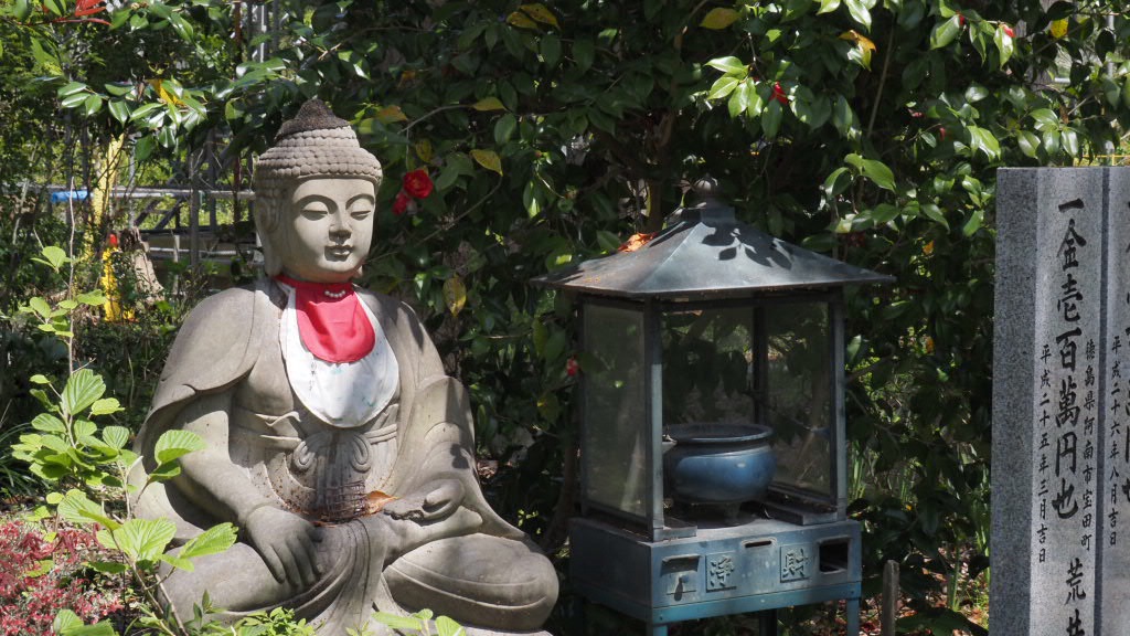 Tempel 86 befindet sich in einem richtig verwunschenen Garten. Da sieht man nichts von der berühmten japanischen Landschaftspflege. Alles mehr oder weniger sich selbst überlassen. Zumindest macht es einen solchen Eindruck. Hätten dort Bänke gestanden, ich wäre erst am späten Nachmittag wieder aufgebrochen, denn das Wetter war noch immer strahlender Sonnenschein.