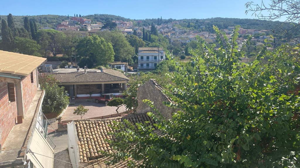 Alles leer! Der ganze Ort leer! Nicht mal ein Auto oder ein Motorroller kam gefahren! Auch die auf Korfu allgegenwärtigen Katzen waren nicht zu sehen! Ob die noch einen Kater haben?