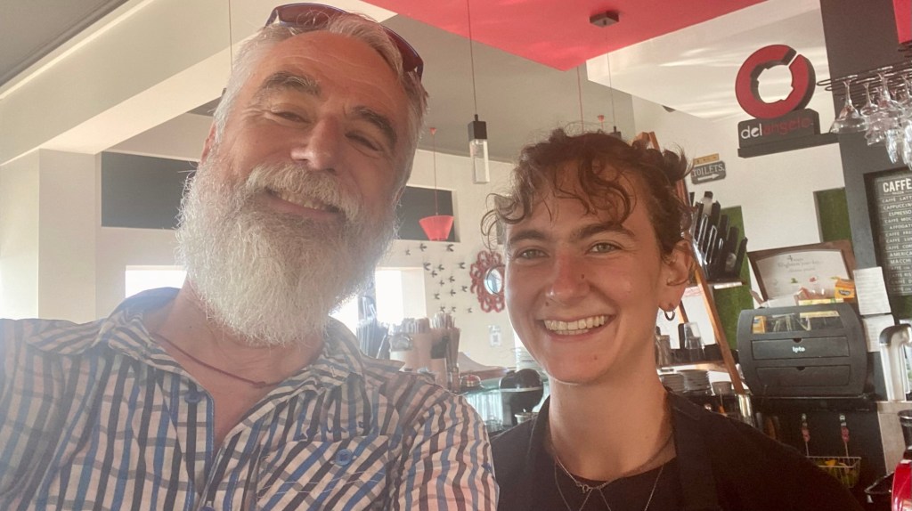 Und das Eis war wirklich allererste Sahne! Alles selbstgemacht. Und raffinierte Sorten. Ich bestellte mir eine Kugel Kumquat- und eine Kugel Feigeneis und verzehrte dann alles bei einmalig schöner Aussicht.